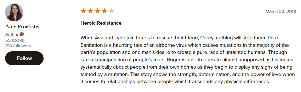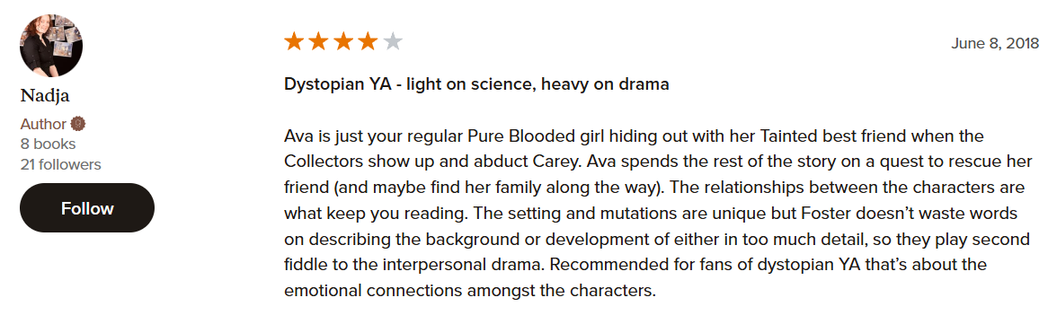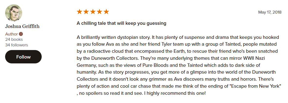The sky is red. Roots are black. Shrubbery is purple. This is the world now, drowning in a nuclear fallout of chemical changes. Humans are no exception. Those that are mutated, affected by the toxins, are called Tainted. Those with immune systems strong enough to withstand it are called Pure Bloods. Those that want to keep their loved ones safe from the pending danger of the Duneworth Collectors.